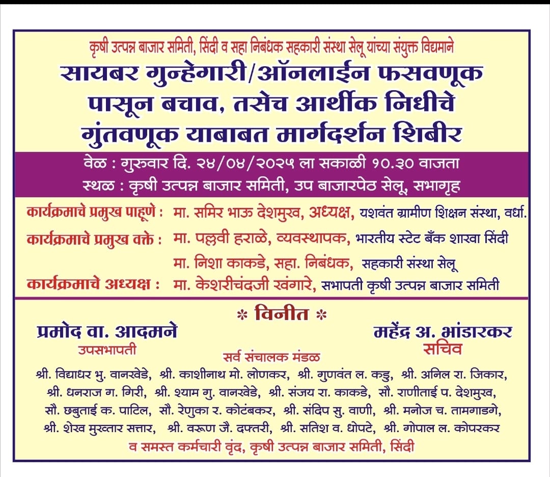 सायबर सुरक्षा आणि सुरक्षित आर्थिक गुंतवणूक मार्गदर्शन शिबीर